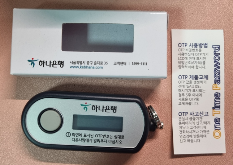 하나은행의 경우 타 은행 대비하여 가장 OTP 가격이 저렴한데요.