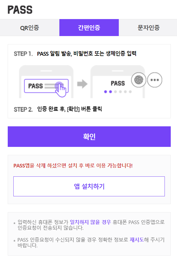 PASS로 본인 인증을 진행하구요.