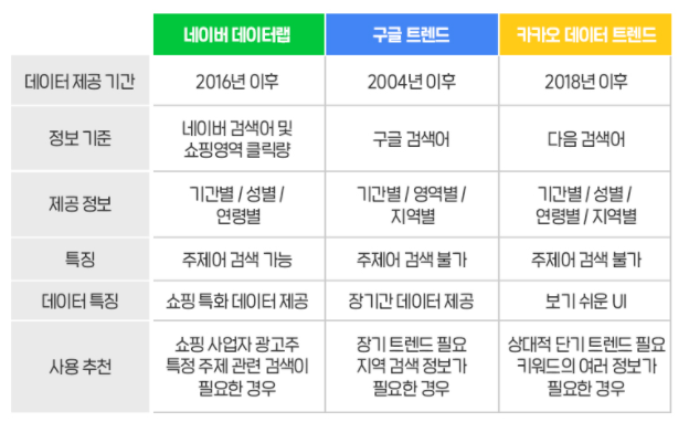 각 포털 사이트는 기본적으로 빅데이터에 대한 분석사이트를 제공하고 있습니다.