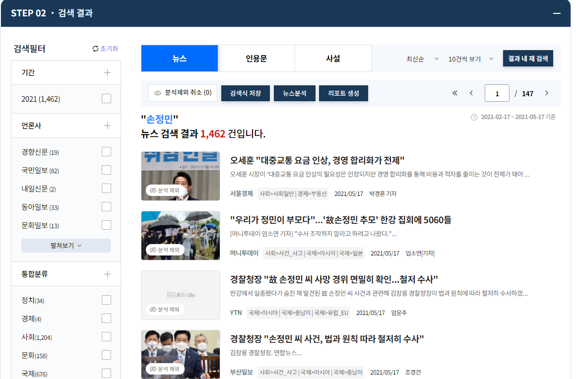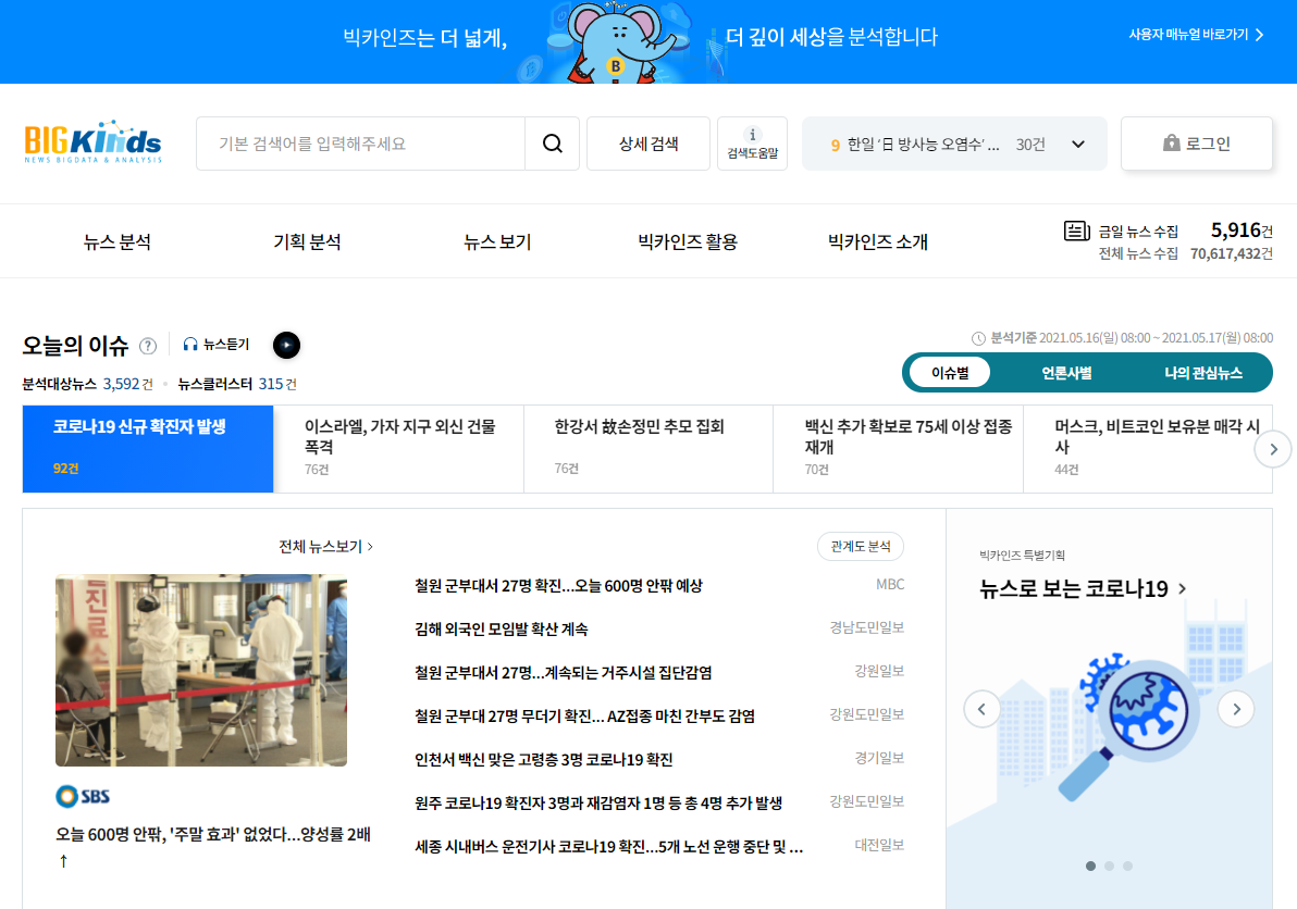 뉴스에 특화된 빅데이터 분석 툴이구요.