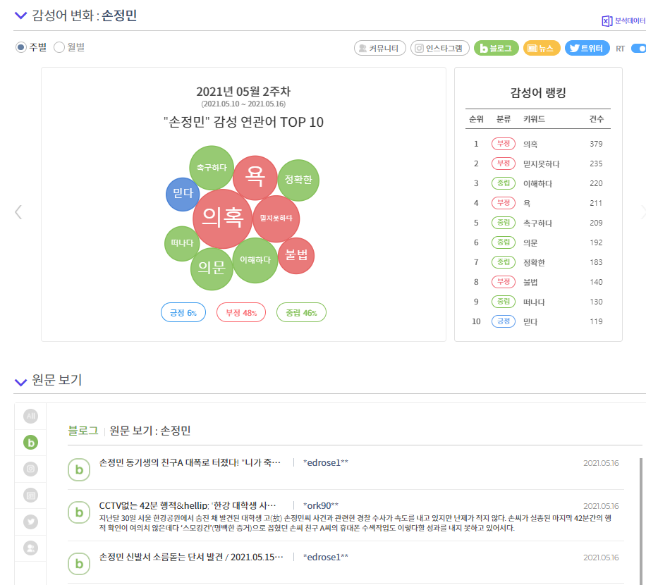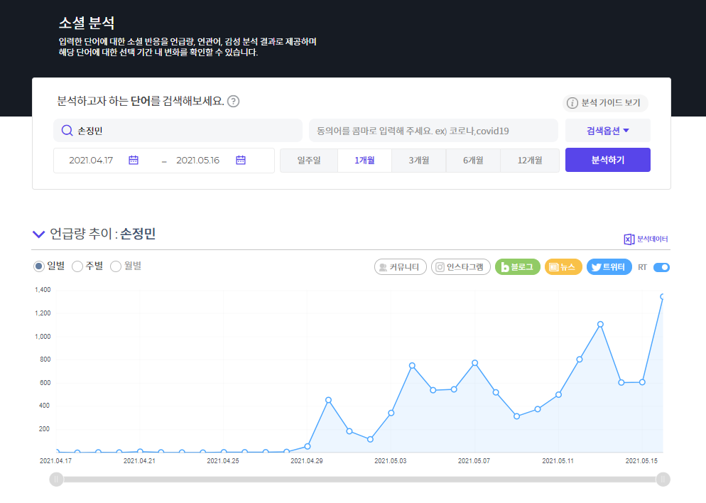 국내에서 SNS관련 분석은 상당히 고도화 된 사이트구요.