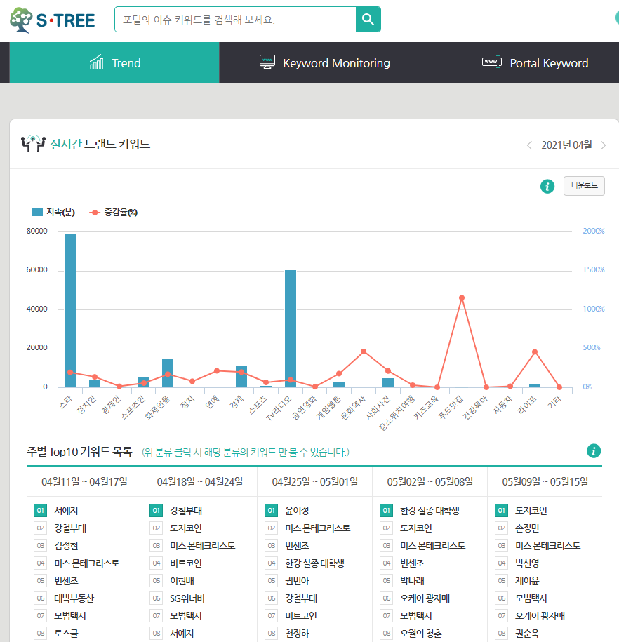 다양한 실시간 트렌드를 분석할 수 있구요.