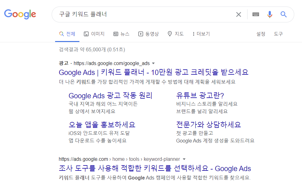 먼저 구글에서 구글 키워드 플래너를 검색하고 페이지에 이동합니다.