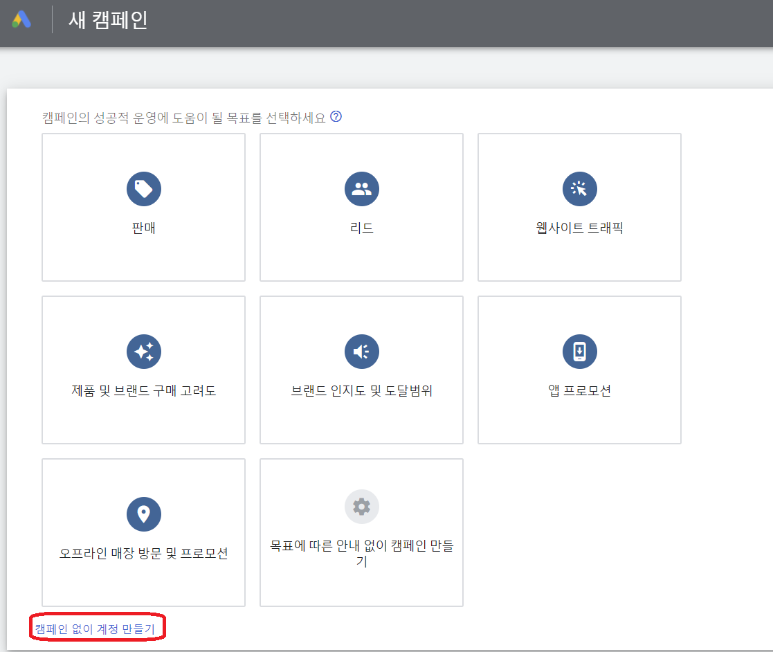 하단의 캠페인 없이 계정 만들기를 클릭합니다.