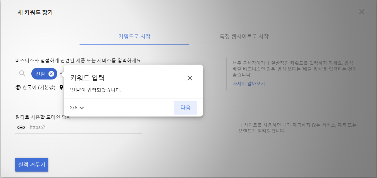 그 다음 저는 광고가 아닌 키워드를 찾기위해서 하는 것이기 때문에