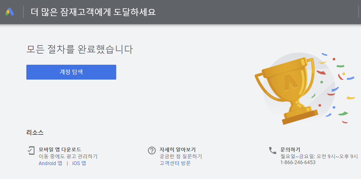 이제 구글 AD 계정이 생성되었습니다. 중간의 계정탐색을 통해서 구글 AD를 활용해 봅시다.