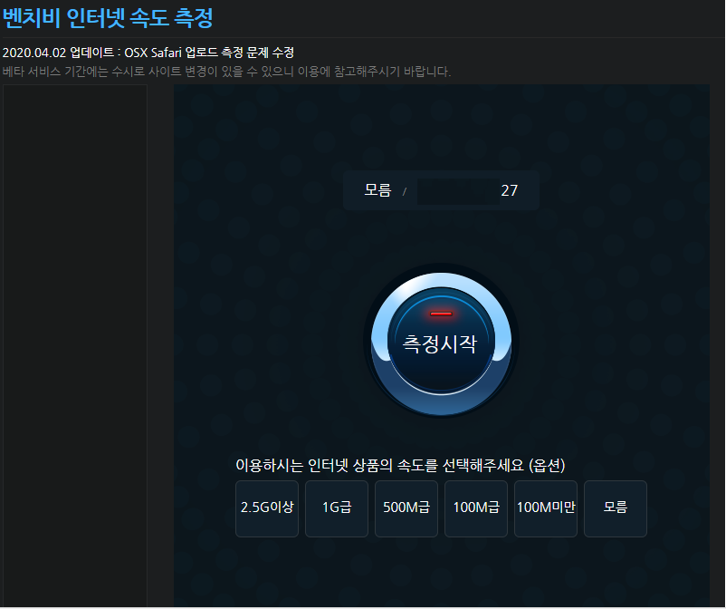 하지만 예전부터 오래동안 인터넷 속도측정의 대명사는 벤치비였습니다.