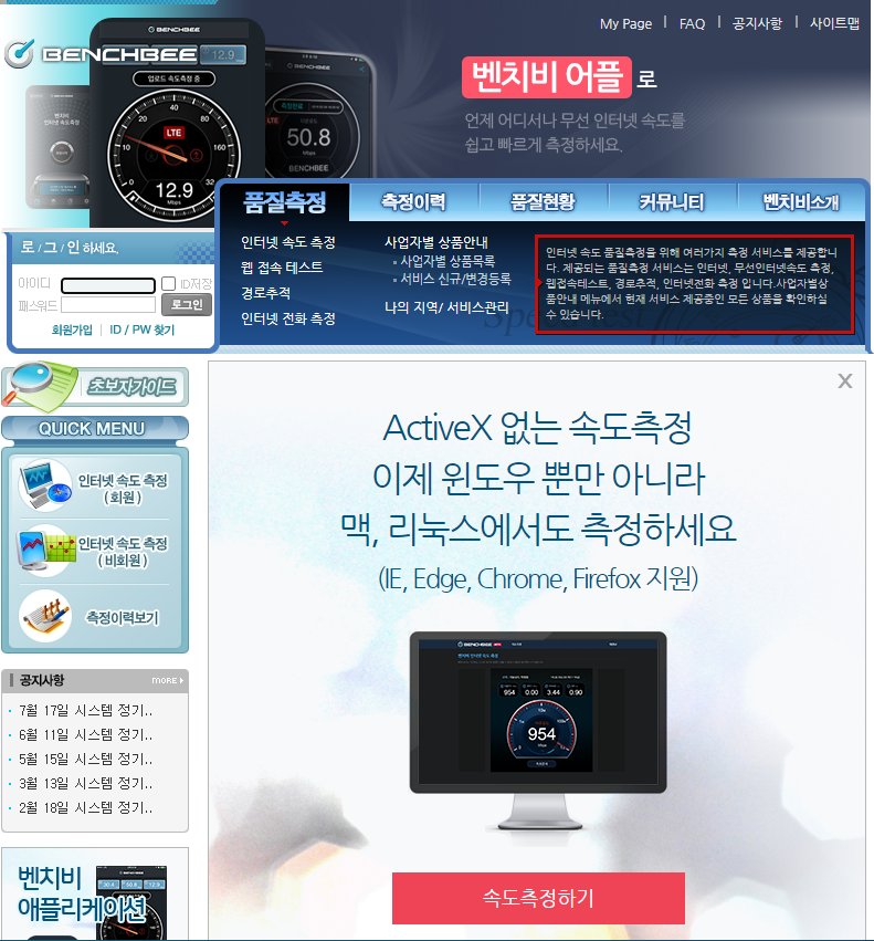 벤치비 초고속 인터넷 속도측정 사이트