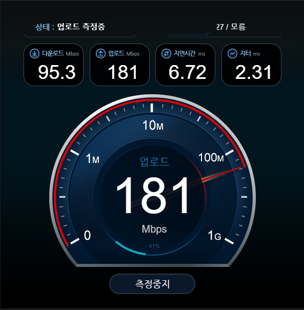 그러면 간단한 테스트후에 속도가 나오는데요.