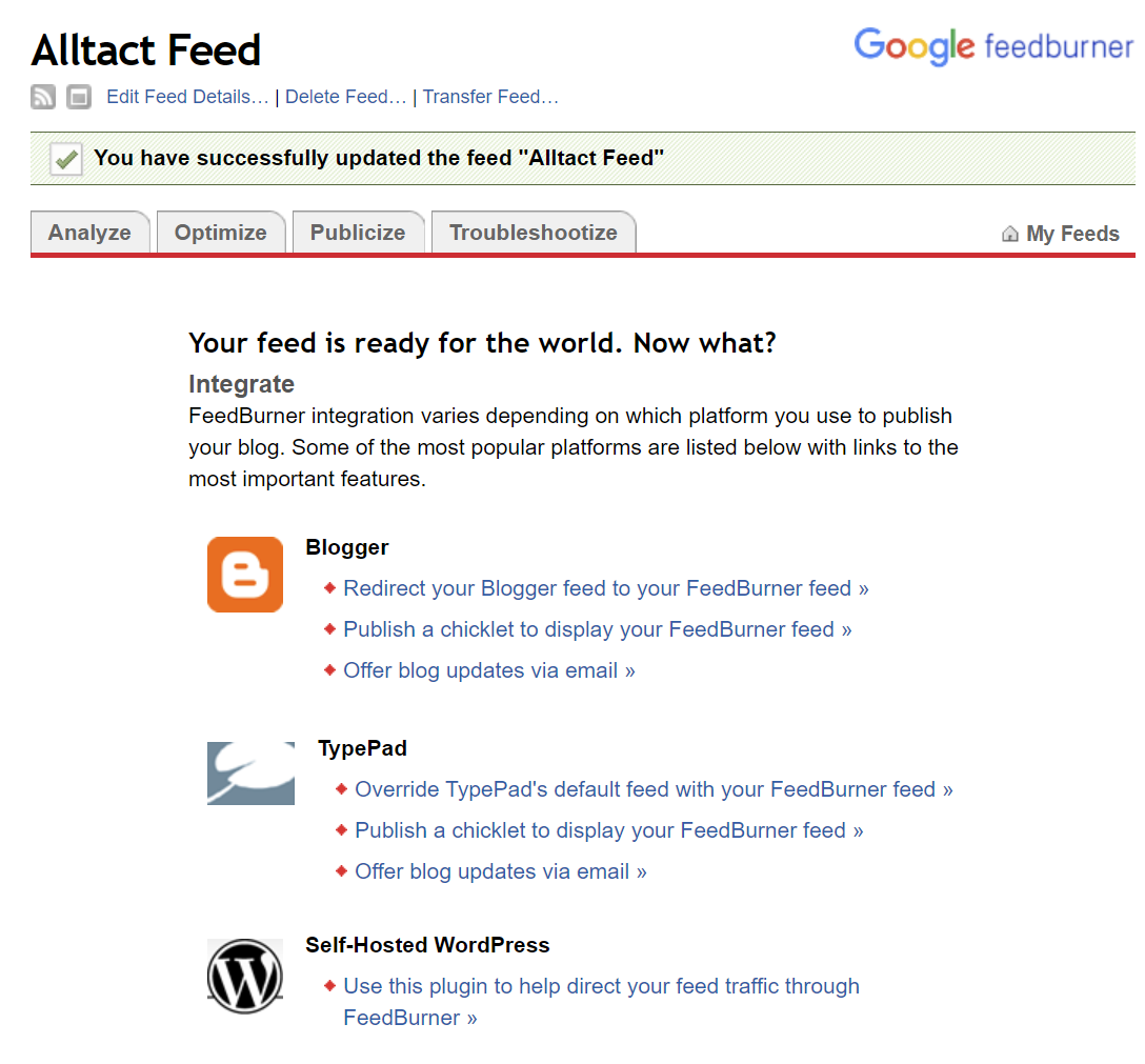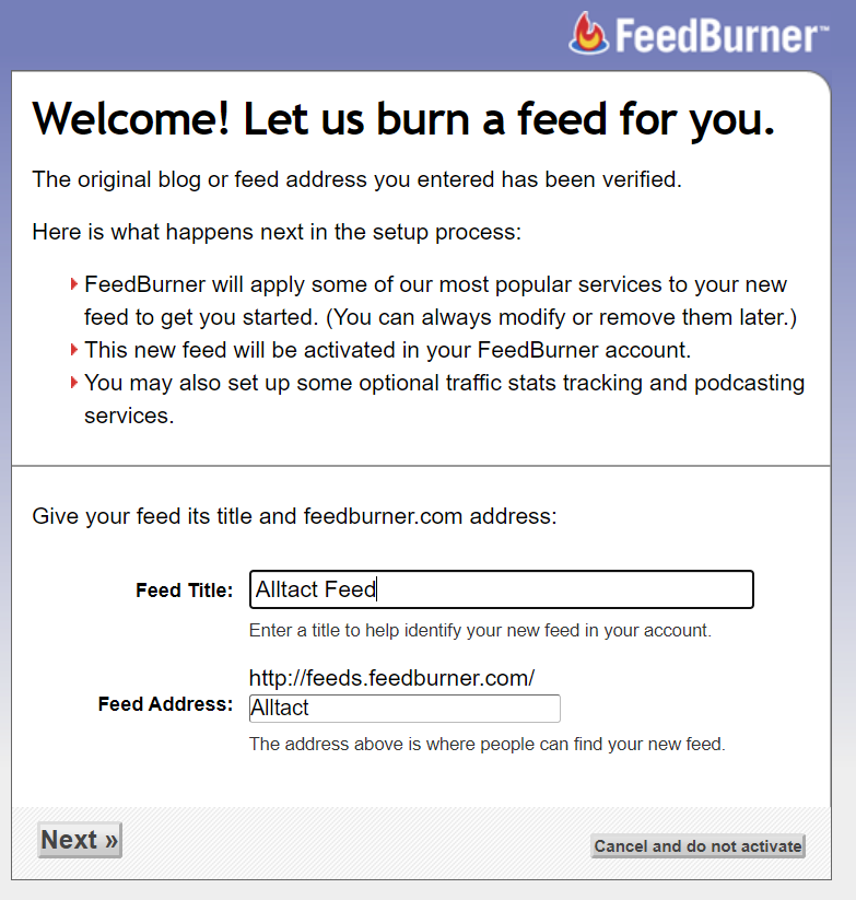 이제 여기에서 NEXT를 누르면 FeedBurner 설정이 완료됩니다.