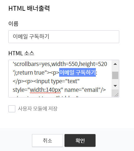 이건 대형 포털 사이트 등에서 광고 및 이벤트 내용을 이메일로 구독하는 기능을 블로그에서도 구현하는 기능입니다.