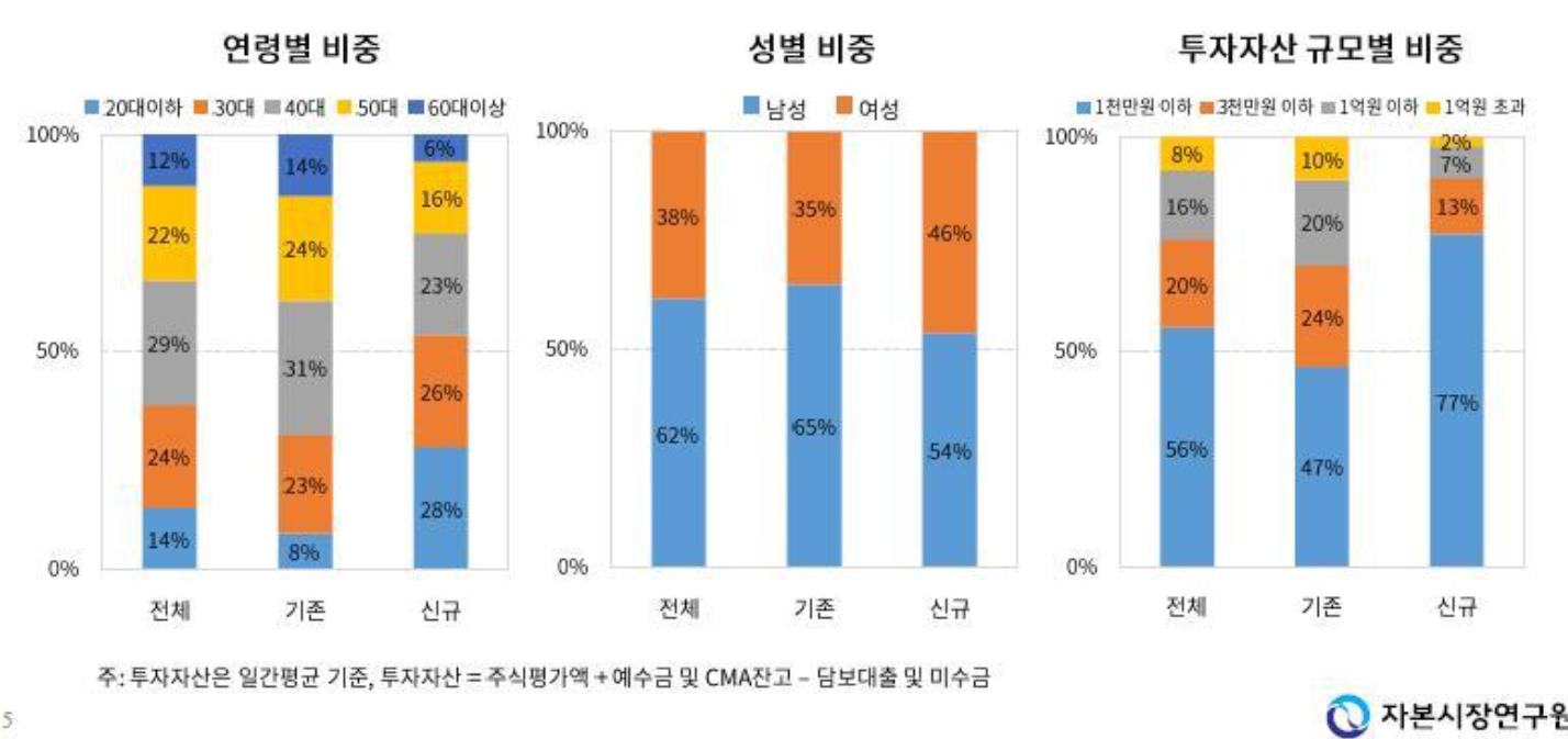 신규 투자자는 연령층이 낮고, 여성 비중이 높았다. 1천만원 이하 소액도 많았다.