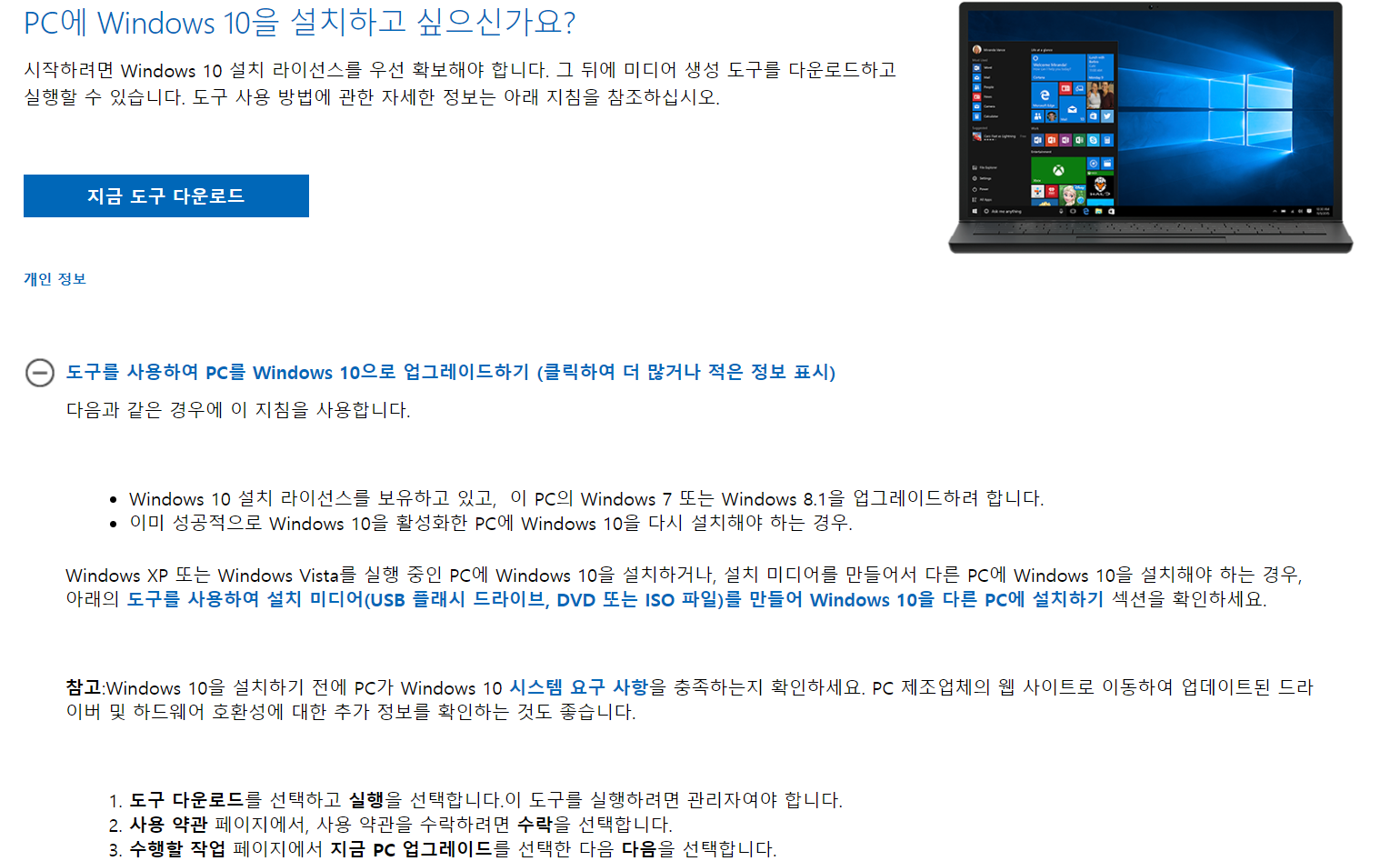 윈도우 10에서 윈도우 다운로드 도구를 통해서 윈도우 10 iso 파일을 다운로드 받은 것처럼