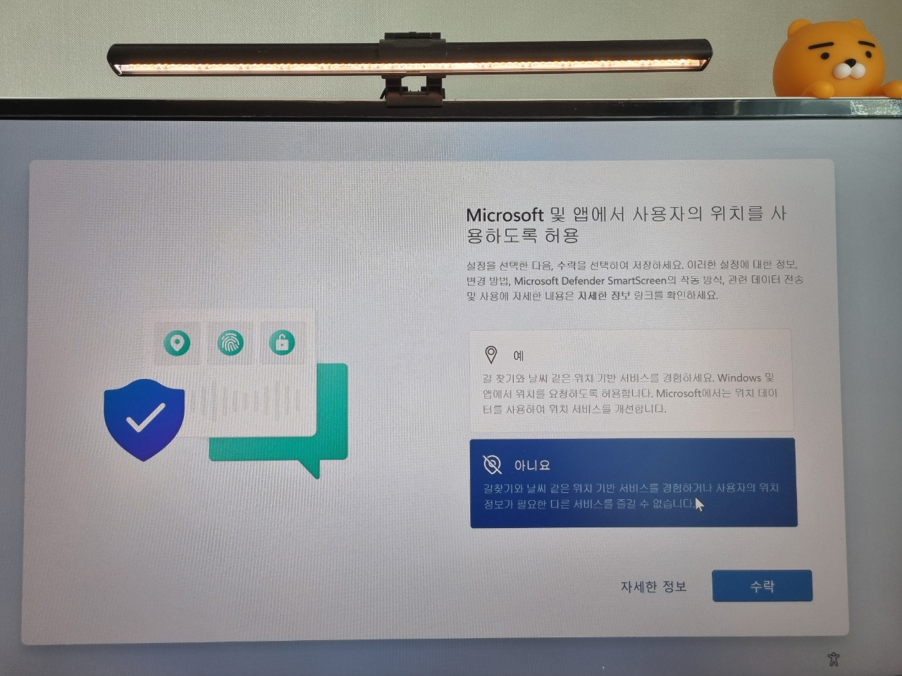 그 이후 각종 윈도우 11 관련 데이터를 설정하시면 되구요.