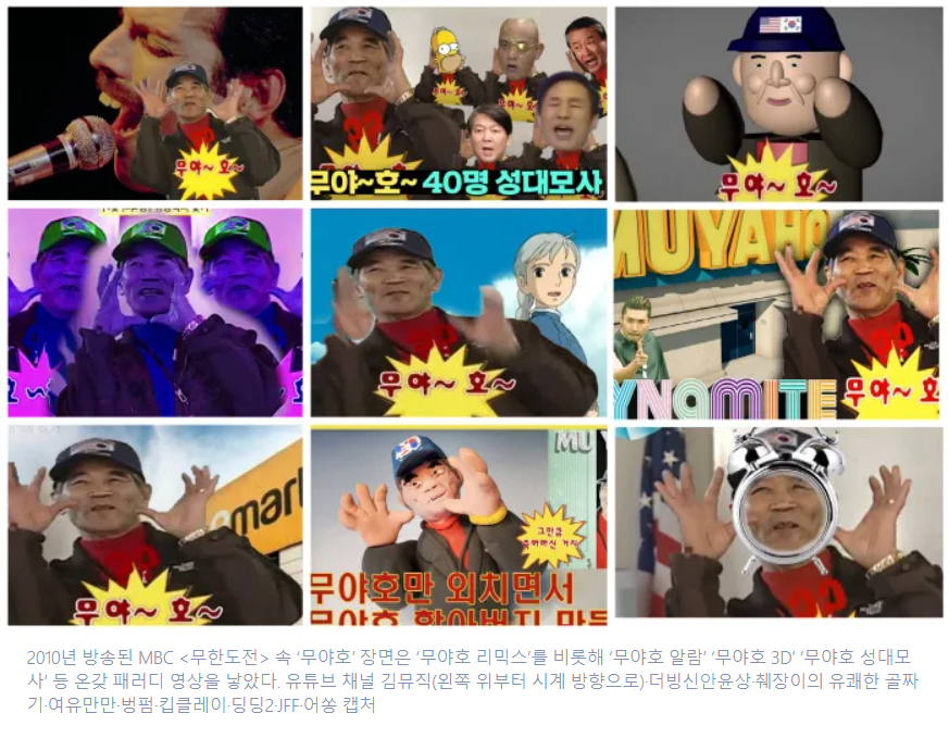 인터넷에서 쉽게 찾아볼 수 있는 무야호 패러티 밈 영상 들