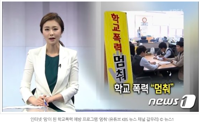 그리고 요즉 학교폭력을 막기 위한 공익광고인 '멈춰'도 밈으로 엄청난 인기를 끌고 있습니다.
