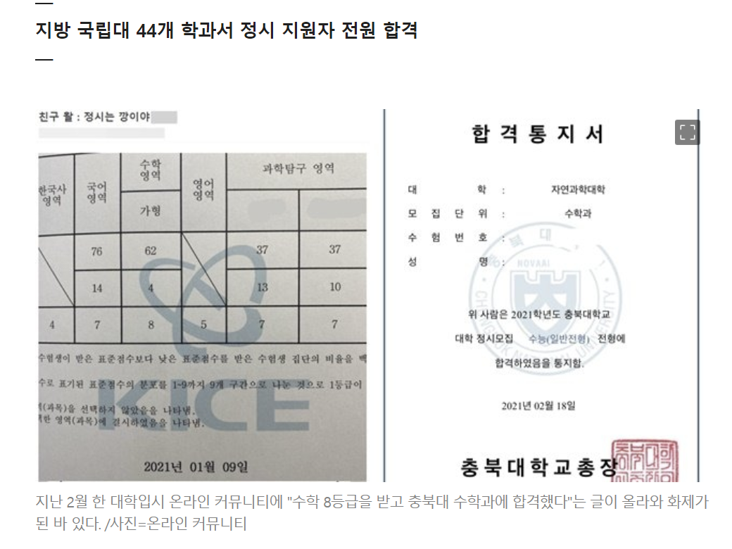 커뮤니티에서 화제가 되었던 수리영역 8등급인데, 경북대 수학과에 붙는등 이슈가 많았는데요.