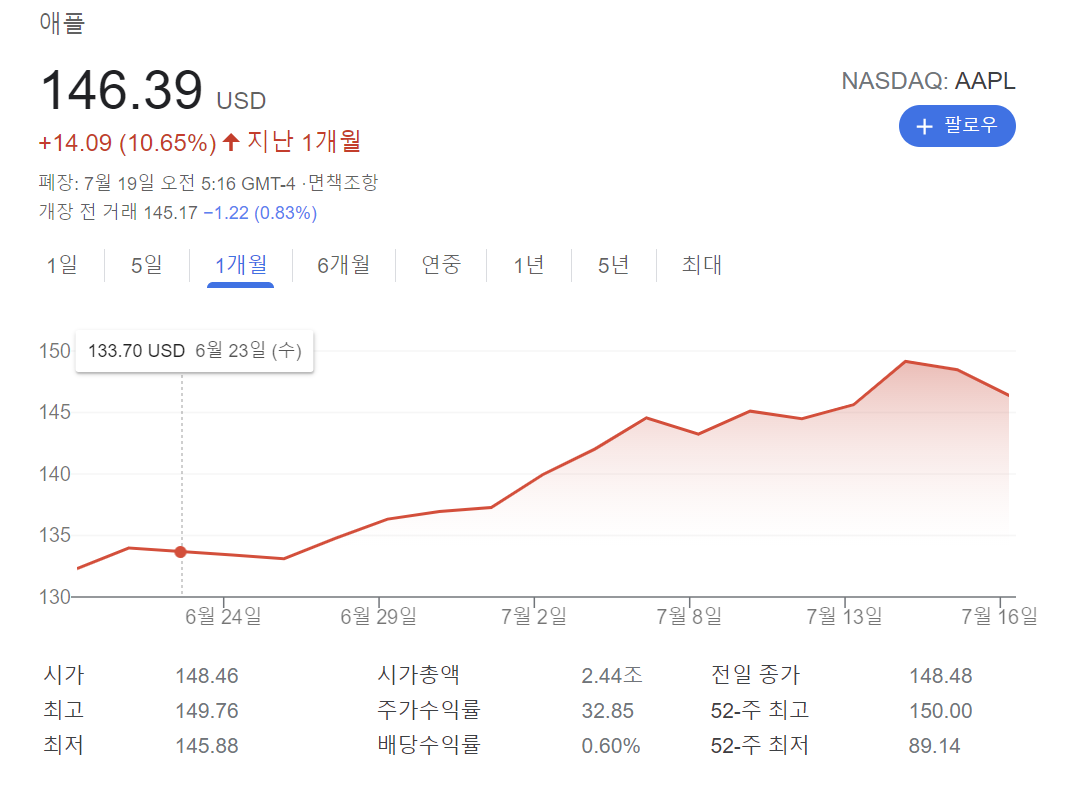 현재 1개월간 급상승했던 애플 주가가 다시 오를 수 있을까요?