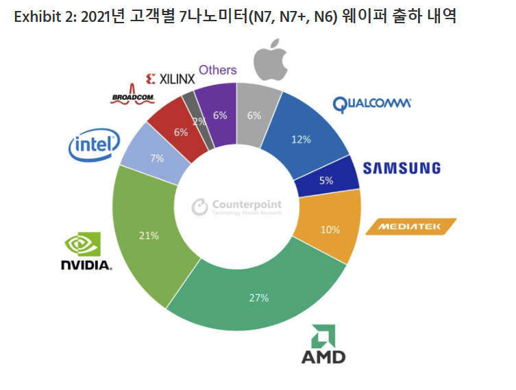 그렇기 때문에 7나노는 AMD가 가장 많이 차지하고 있습니다.