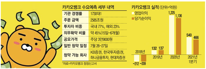 하지만 이번 공모가 결정으로 카카오뱅크의 시가총액은 18조 5000억 원으로 결정 났는데요.
