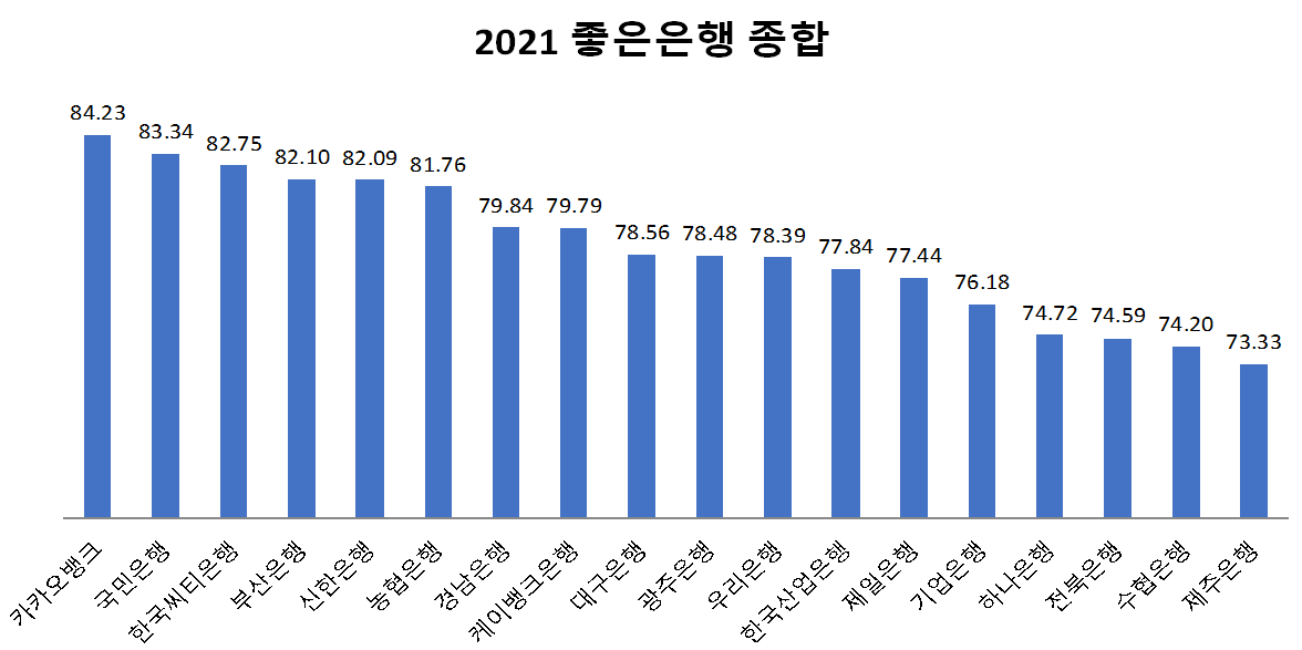 올해의 경우 카카오 뱅크가 1등을 하였습니다.