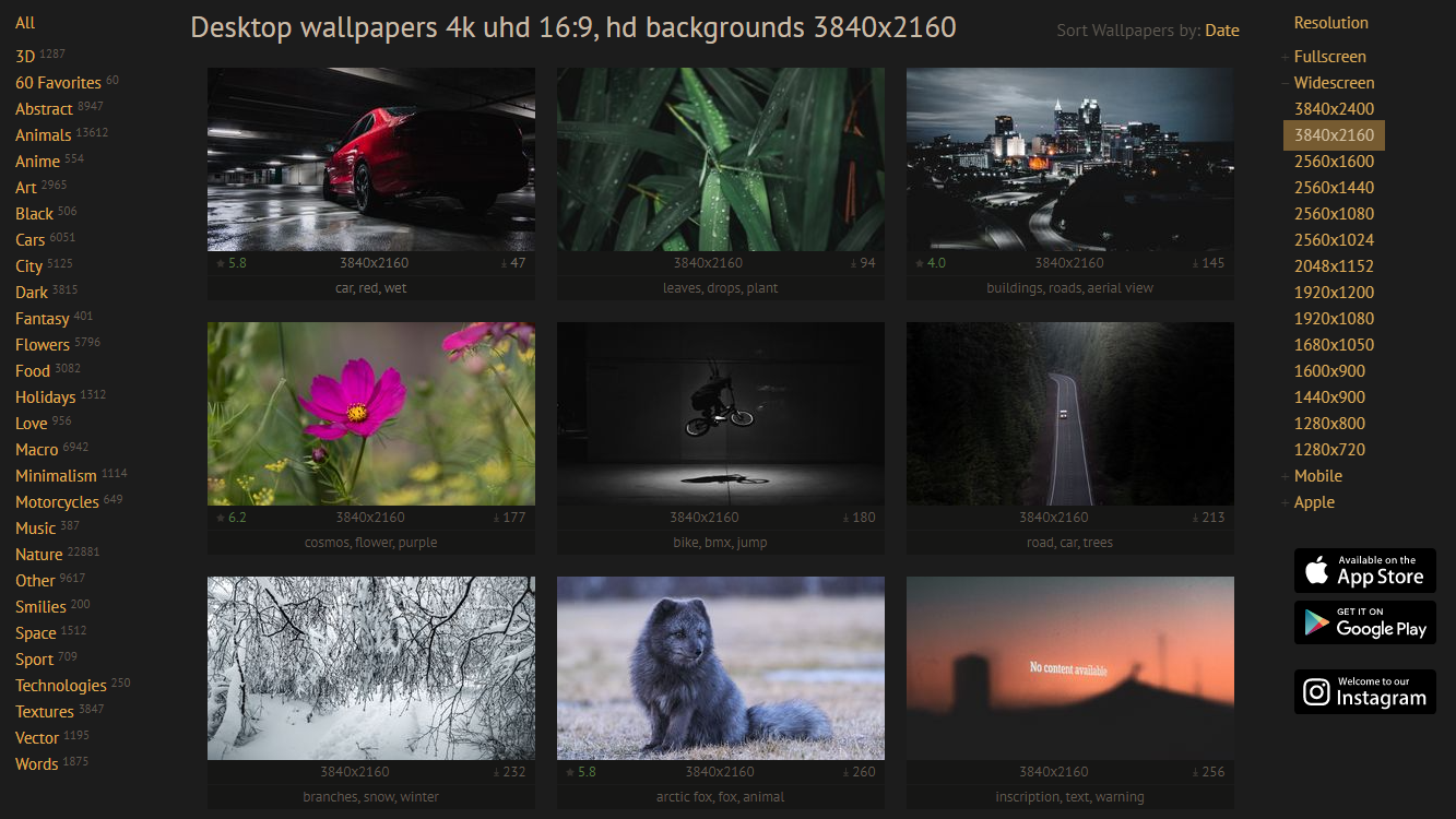 이 역시 4K 해상도를 지원하는 배경화면 사이트인데요.