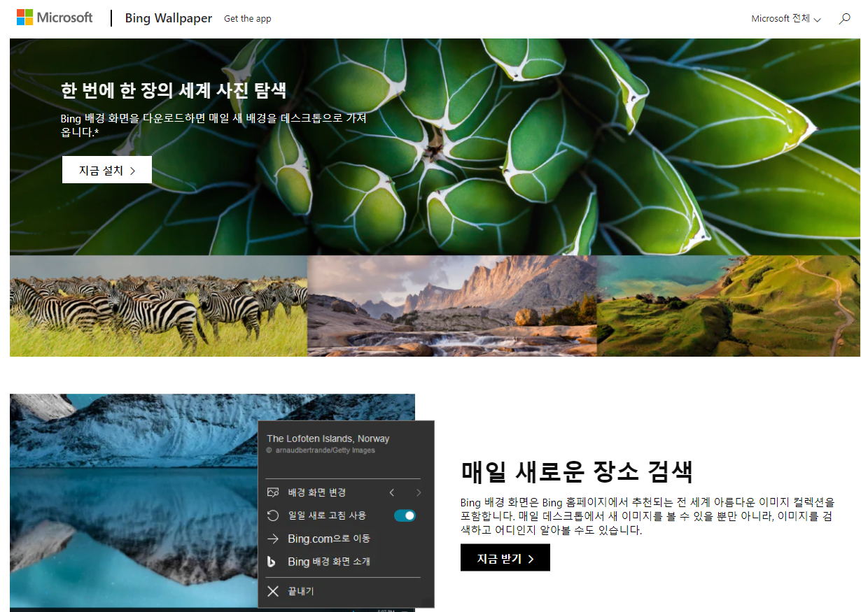한 번에 한 장의 세계 사진 탐색 | Bing Wallpaper (microsoft.com)