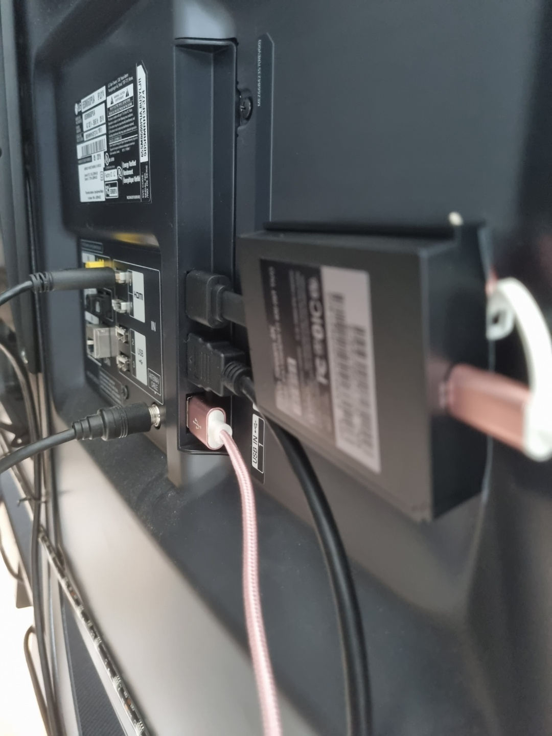 실제 Tivo 4K설치는 간편하게 TV 뒷편에 HDMI와 전원 USB만 연결하면 간단하게 연결할 수 있습니다.