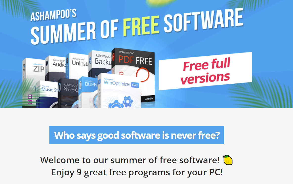 Ashampoo에서 여름 기념으로 9개의 소프트웨어를 무료로 배포하고 있습니다.