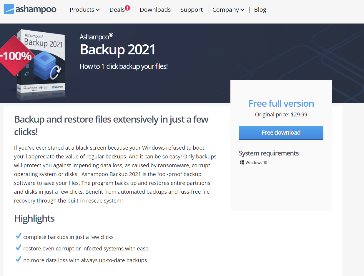 Ashampoo® Backup - 윈도우 백업 프로그램