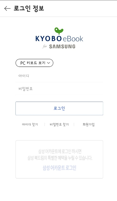 설치 후에 교보 회원가입을 안 하셨다면 회원 가입이 필요하고요.