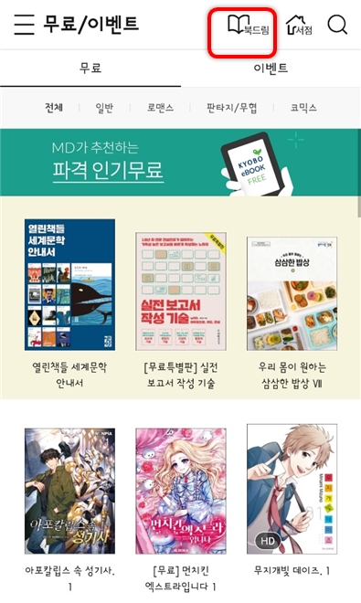 이제 로그인이 완료되면 이제 교보에서 베스트셀러와 판타지 소설을 대여하여 볼 수 있습니다.