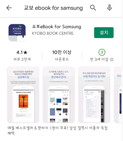 사용법 역시 간단한데요. 구글 플레이에서 교보 Ebook for samsung을 설치하기만 하면 됩니다.