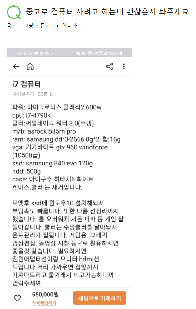 물론 본인이 컴퓨터를 어느정도 알고 구매하신다면 중고거래를 추천하겠으나,