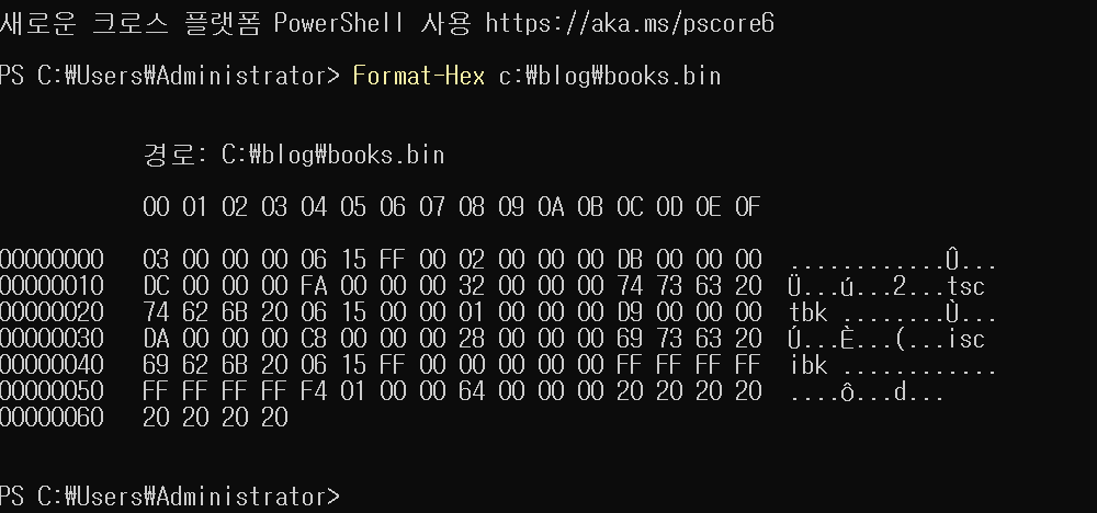 저는 c:\blog 폴더에 있는 books.bin파일을 열어보았습니다.