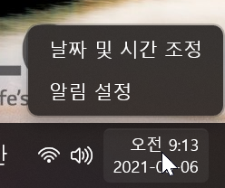 작업표시줄 아래에 있는 시계에서 마우스 우클릭 날짜 및 시간 조정을 누르시면 됩니다.