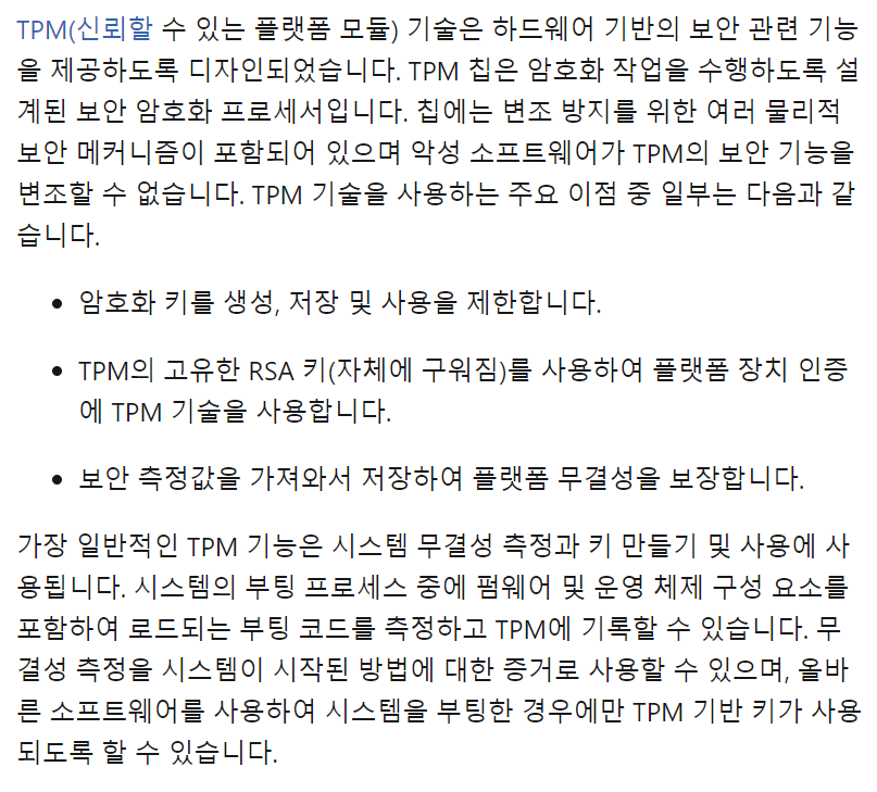 최근 윈도우 11에서 설치조건 중에 TPM 2.0을 강제하면서 이슈가 되기도 했는데요.