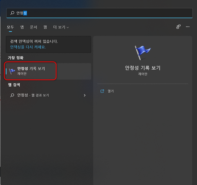 안정성 모니터는 윈도우 검색하기에 안정성만 치면 바로 나오는데요.