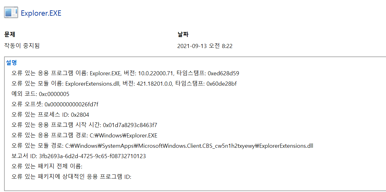 그리고 또 하나의 윈도우 11에서 문제는 카카오톡이 종료되는 것인데요.