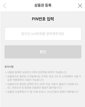 스마일캐시로 충전되며, 구매하게 되면 익일에 MMS를 통해서 발송되는 시스템입니다.