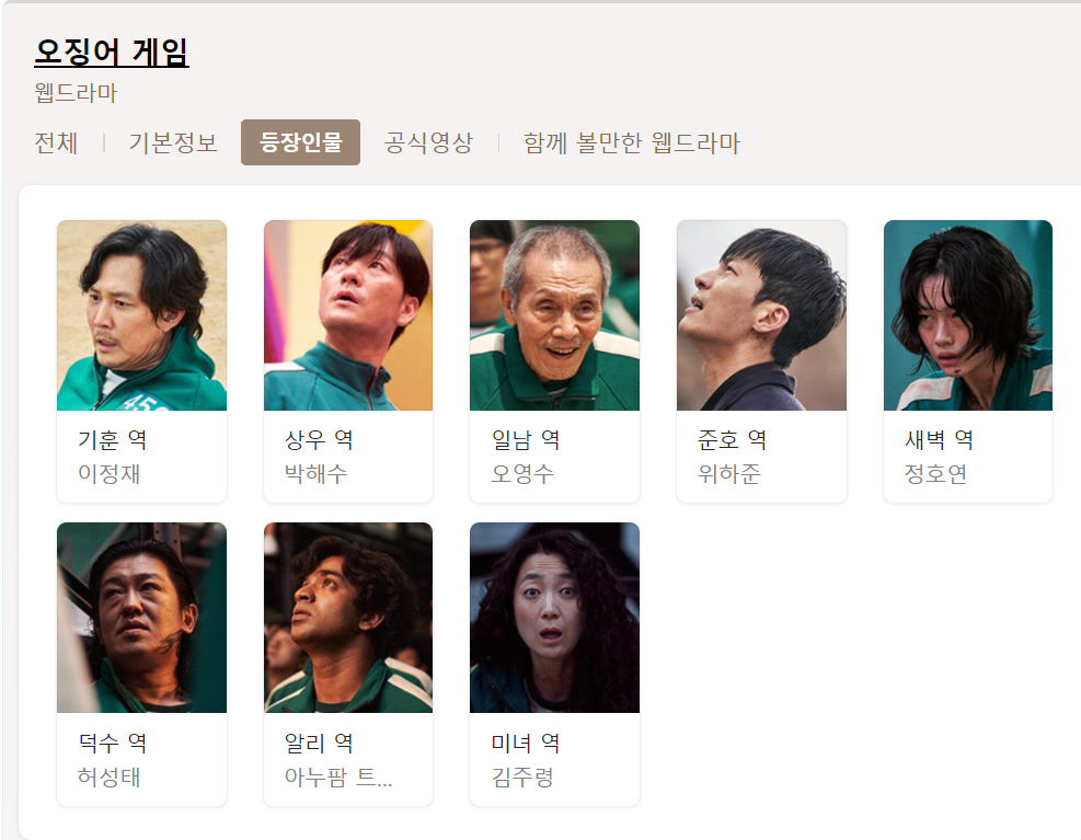 이정재와 슬기로운깜방생활에 나온 박해수, 그리고 오영수, 위하준 등이 출여하구요.