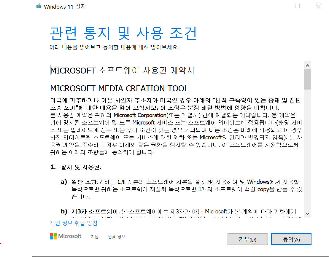 가장 먼저 저작권 동의에 대한 내용이 실행됩니다.