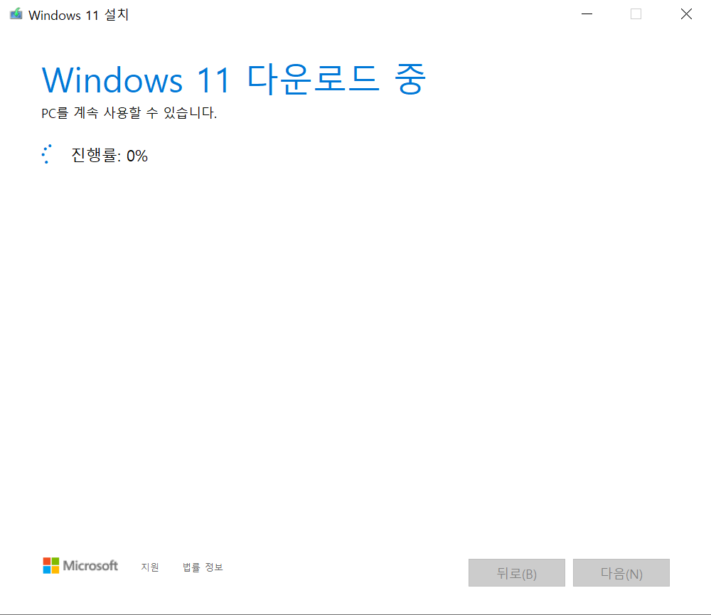 그리고 다음을 누르시면 이제 윈도우에서 자동으로 설치파일을 다운 받고 USB로 설치 USB를 만들어 줍니다.