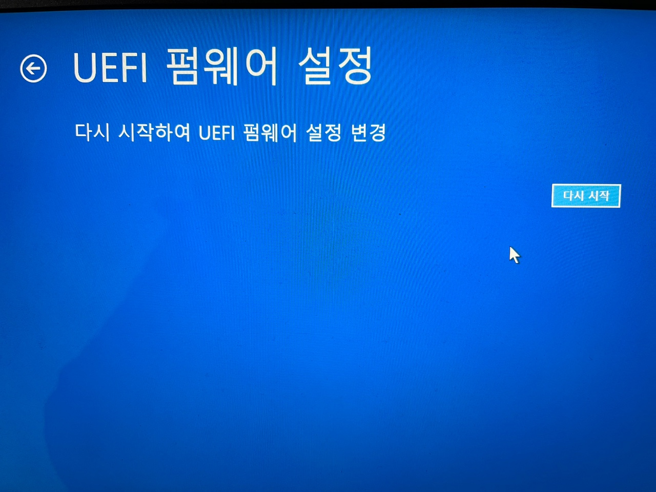 해당 메뉴에 들어가면 다시 시작하여 UEFI 펌웨어 설정으로 접속하게 됩니다.