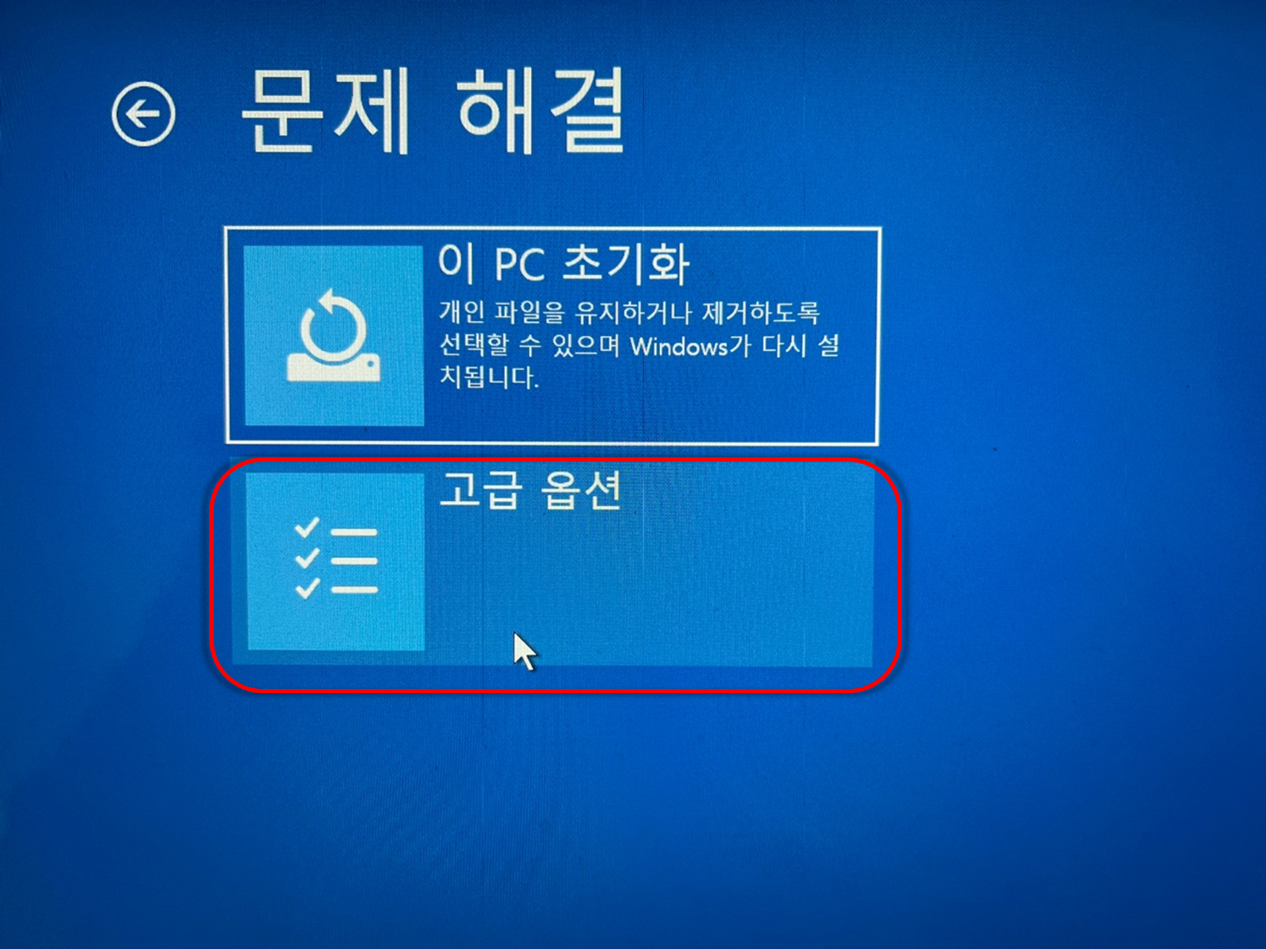 하지만 이번에는 고급 옵션 메뉴로 진입합니다.