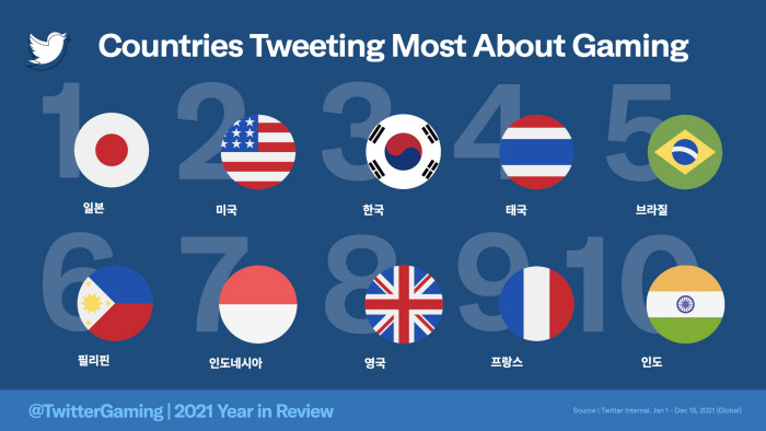 게임 관련 트윗을 많이 하는 나라도 공개하였는데요.