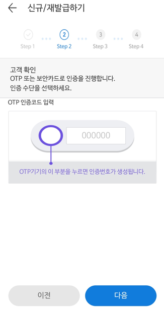 보안매체의 인증코드를 정확하게 입력하고 다음을 누릅니다.