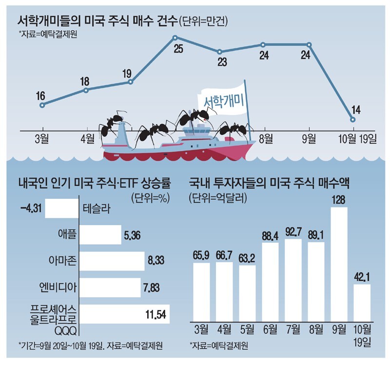 이와 달리 해외주식을 대거 사들인 개인투자자를 서학개미라고 합니다.