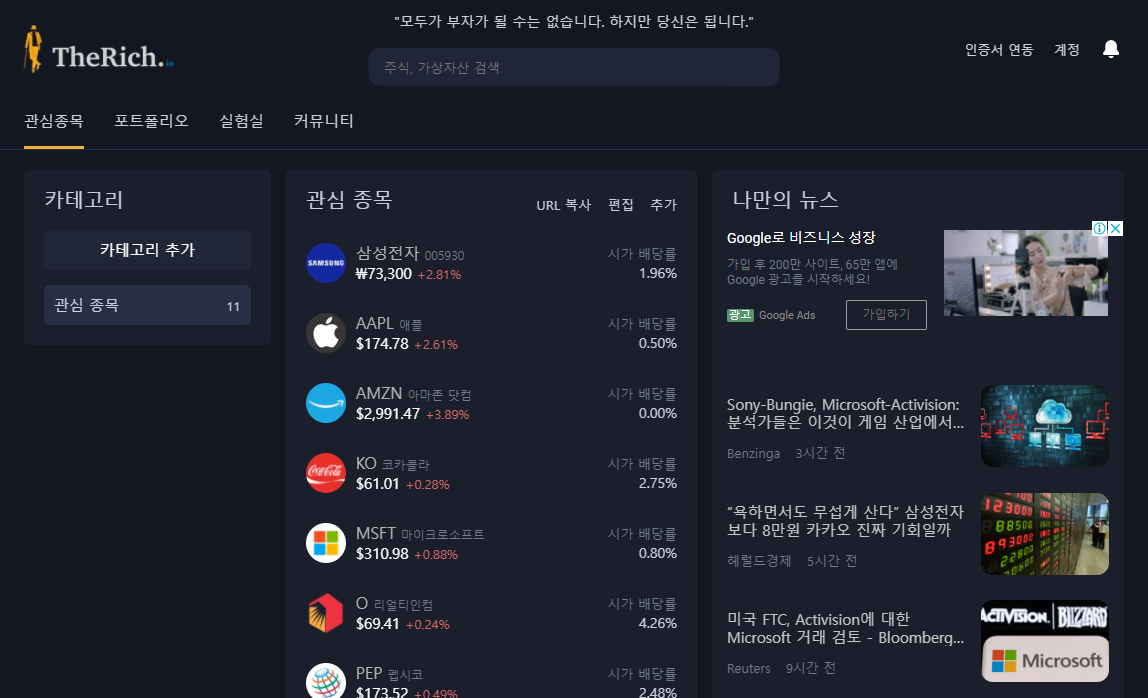 더 리치 - 주식, 배당주, 투자 정보, 포트폴리오 관리