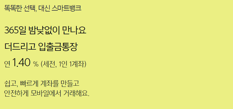 예전부터 유명했었던 KDB 산업은행의 Hi 비대면 입출금 통장을 또 빼놓을 수 없는데요.